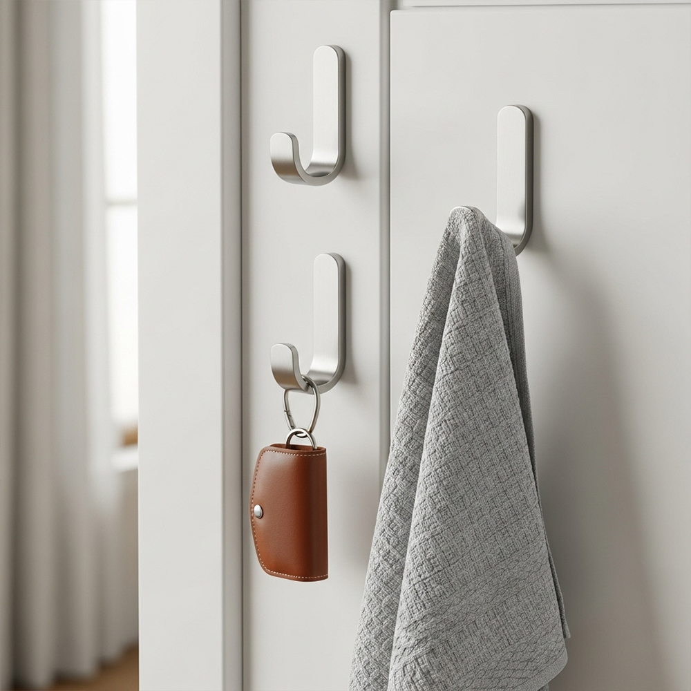 門後掛鉤、金屬掛鉤:結構穩固、承重力佳,適用於居家空間、商業空間與收納系統